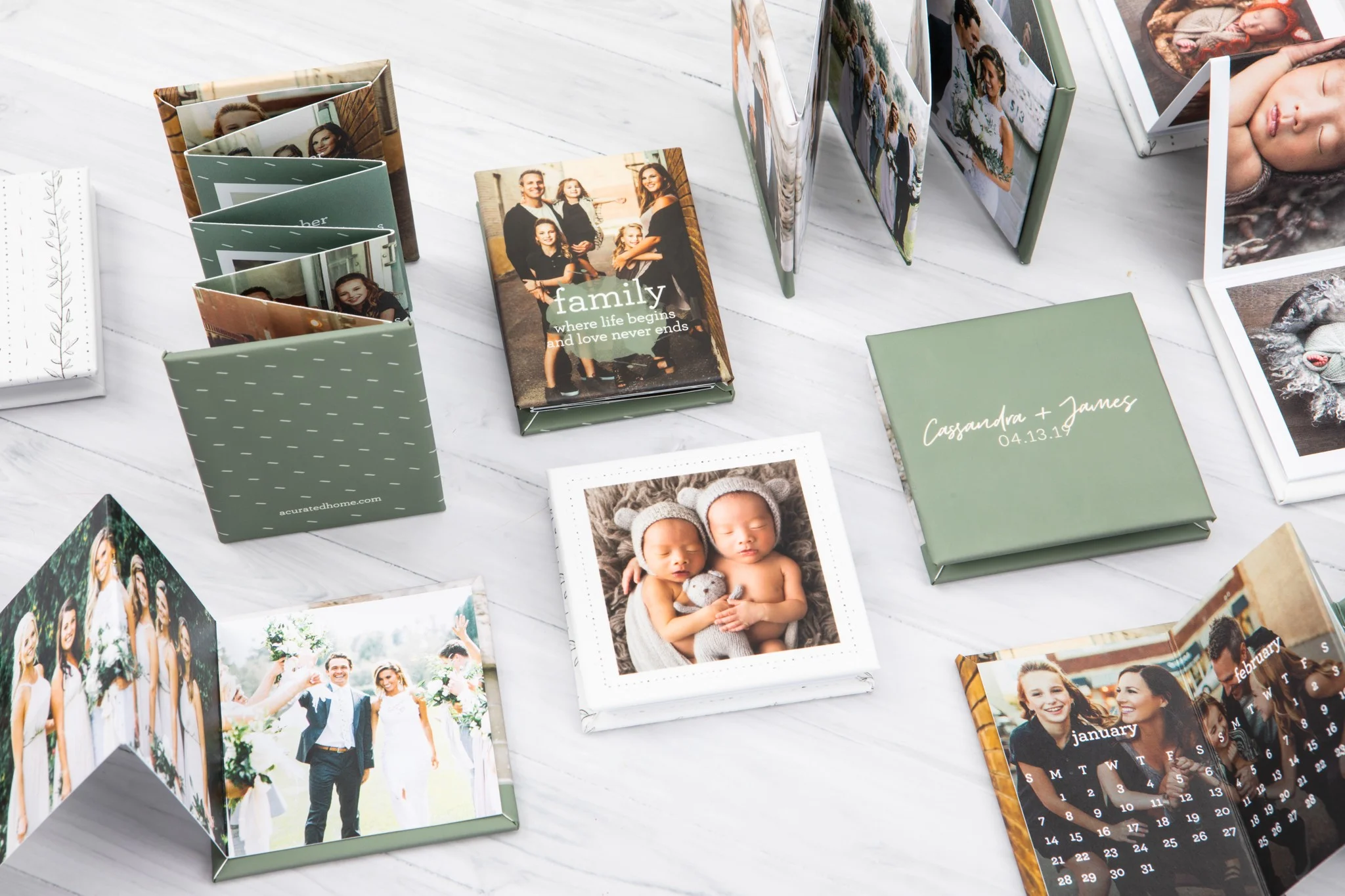 My absolute favorite gift for grandparents are these sweet 3”x3” mini accordion books. These books are hard cover with a magnetic closure and filled with 12 of your favorite images. They’re the perfect brag book!
